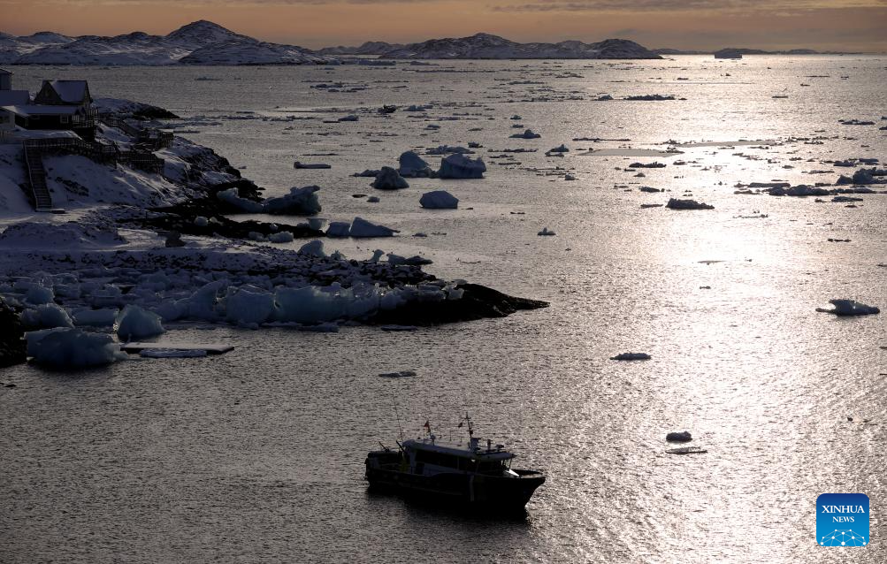 A ship sails on the sea near Nuuk, Greenland, an autonomous territory of Denmark, Feb. 6, 2026. (Xinhua/Li Ying)