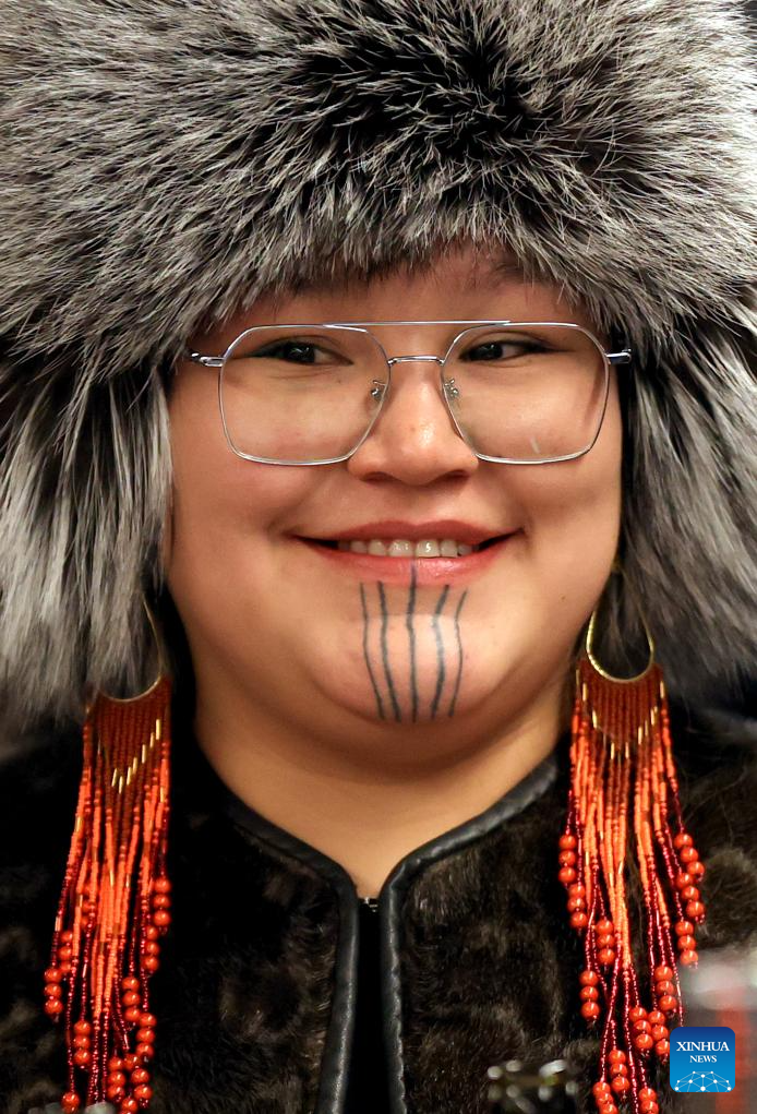 A woman dressed in traditional costumes is seen in Nuuk, Greenland, an autonomous territory of Denmark, Feb. 6, 2026. (Xinhua/Li Ying)