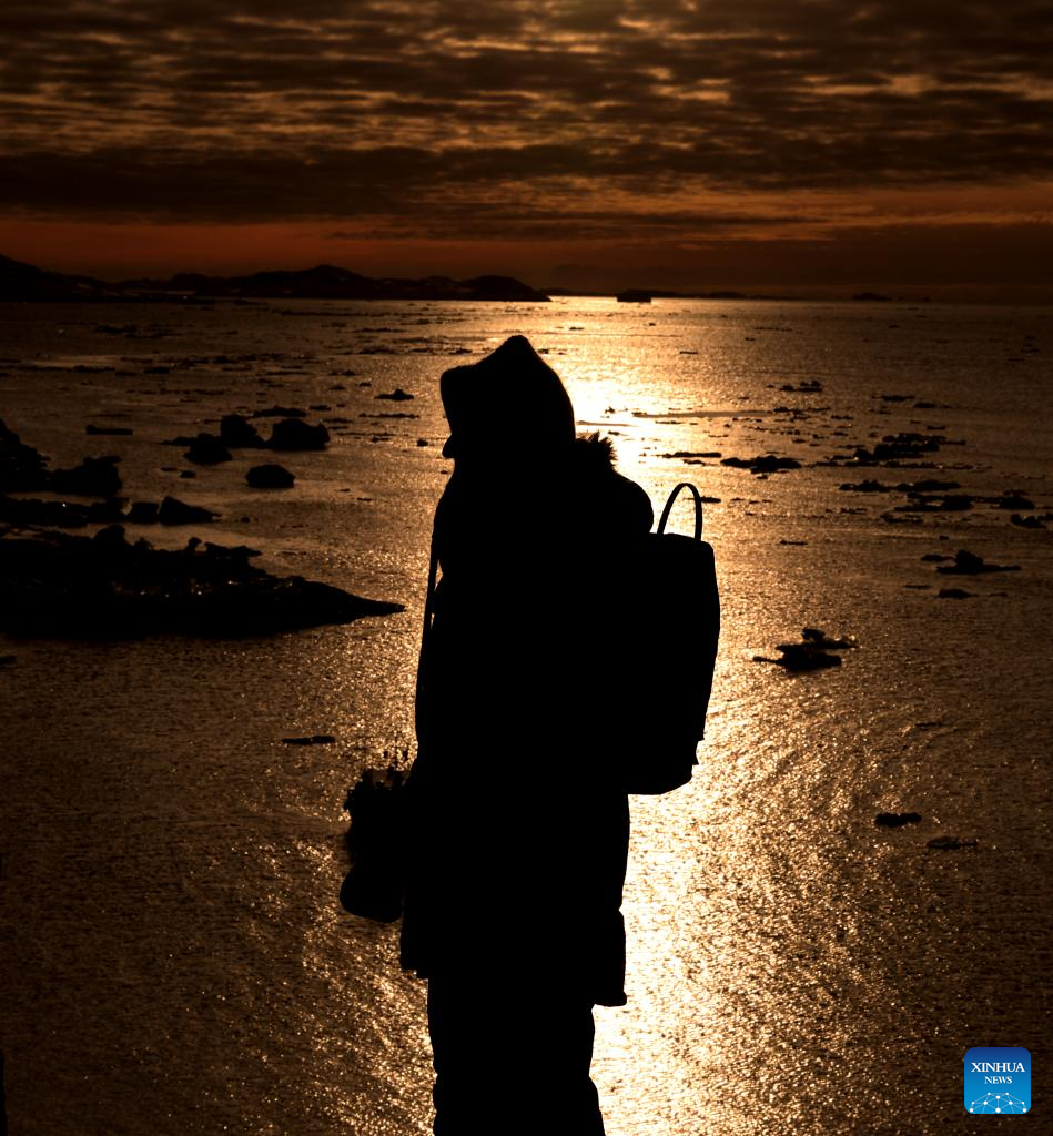 A woman stands in the light at sunset in Nuuk, Greenland, an autonomous territory of Denmark, Feb. 6, 2026. (Xinhua/Li Ying)