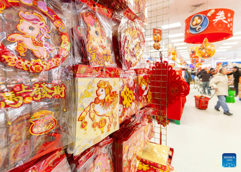 Many shopping malls and supermarkets in Ontario have launched their themed decorations to celebrate the upcoming Chinese New Year of the Horse. (Photo by Zou Zheng/Xinhua)
