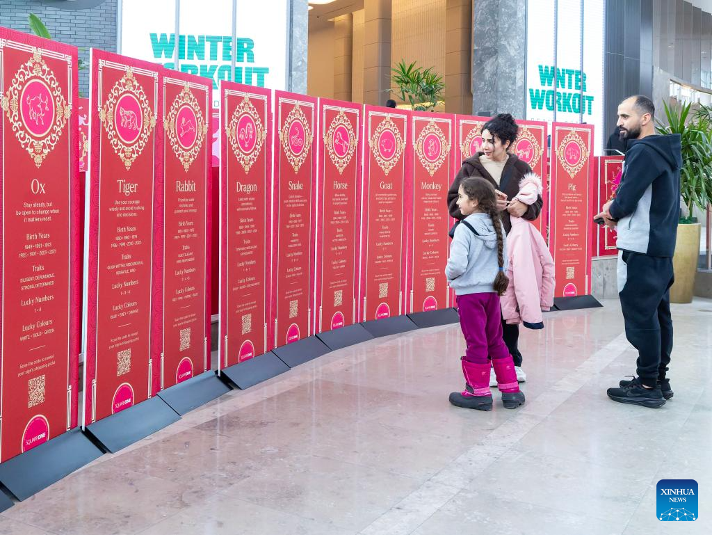 People view the introduction about the Chinese zodiac in a shopping center in Mississauga, Ontario, Canada, on Feb. 6, 2026.