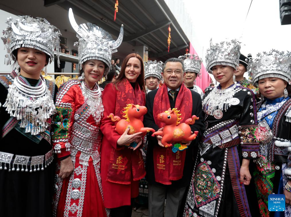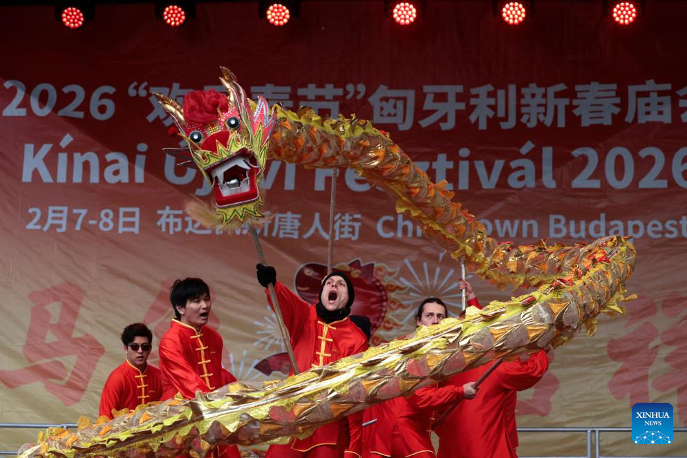 BUDAPEST, Feb. 7 (Xinhua) -- Under a crisp, pale blue winter sky, the rhythmic thunder of drums and the sizzling aroma of spices from China's Sichuan province transformed the industrial backdrop of Budapest's 10th district into a vibrant tapestry of color and sound.
