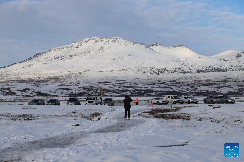 Tourists visit the Thingvellir National Park in Iceland on Feb. 7, 2026. (Xinhua/Zhu Haochen)