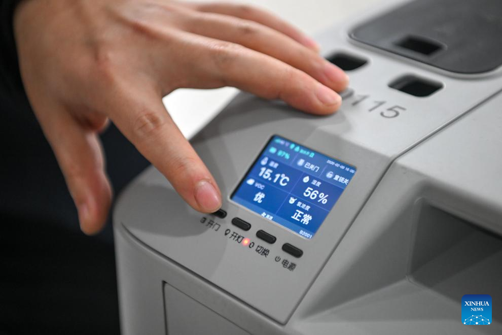 A staff member adjusts the set-ups of a pet transport case in southwest China's Chongqing Municipality, Feb. 9, 2026. Chongqing railway authorities have launched a pilot pet consignment service on high-speed railways on designated routes during the ongoing Spring Festival travel rush.