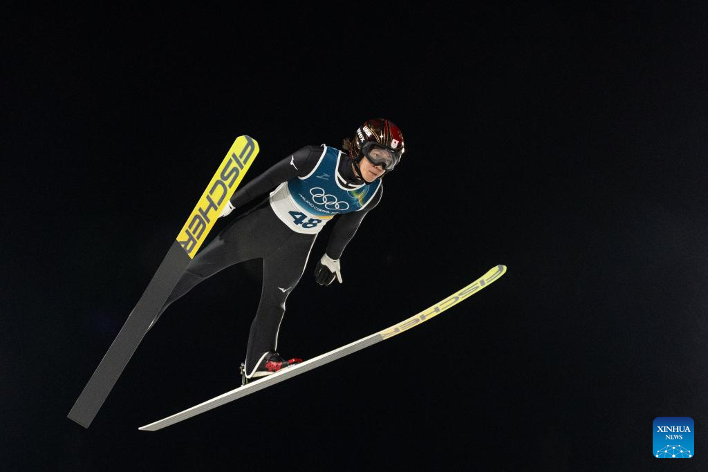 Nikaido Ren of Japan competes during the Ski Jumping Men's Normal Hill Individual of the 2026 Milan-Cortina Winter Olympics in Predazzo, Italy, Feb. 9, 2026. (Xinhua/Huang Wei)