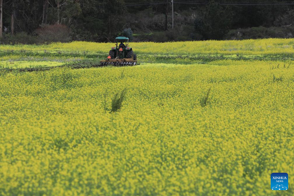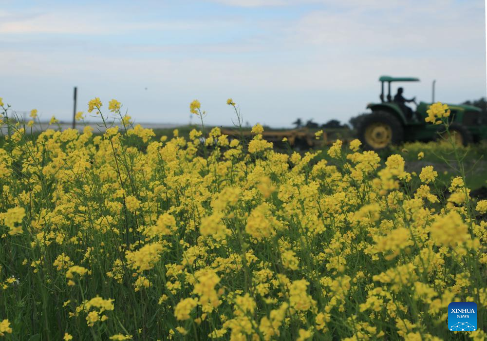 This photo taken on Feb. 9, 2026 shows rapeseed flowers at a filed of Half Moon Bay in San Francisco Bay Area of California, the United States. (Photo by Liu Yilin/Xinhua)