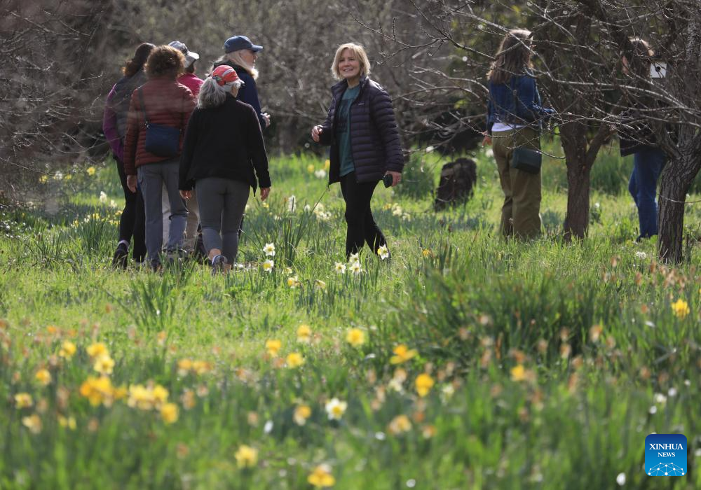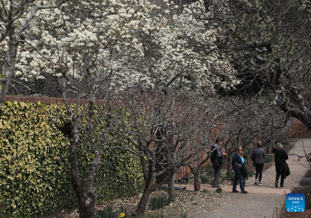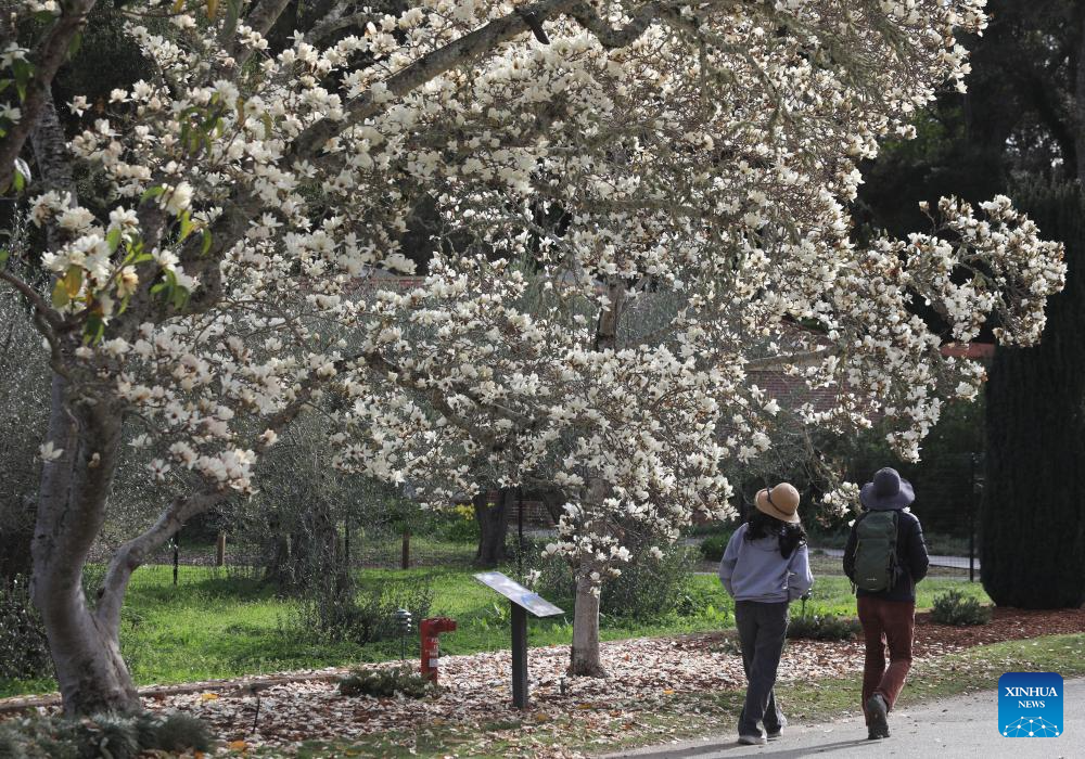 People stroll at the Filoli Historic House & Garden of Woodside in San Francisco Bay Area of California, the United States, on Feb. 9, 2026. (Photo by Liu Yilin/Xinhua)