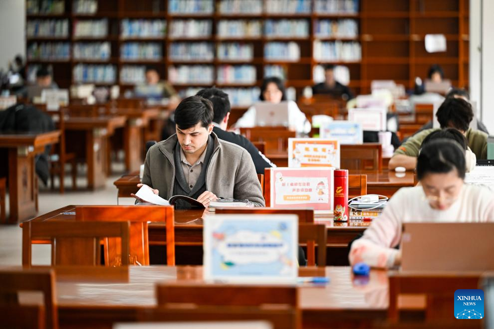 Suleimanov Umar reads at the library in Nankai University, north China's Tianjin, Feb. 5, 2026. On the occasion of traditional Chinese Xiaonian Festival in northern China, which fell on Tuesday this year, Suleimanov Umar, a 26-year-old Tajikistan student in Nankai University of Tianjin, and other international students visited a local festive fair in Chuanfangyu Town to experience the vibrant traditions of Chinese New Year. Celebrated on the 23rd day of the last month of the Chinese lunar calendar, Xiaonian is a festival marking the start of the countdown to the Chinese New Year.