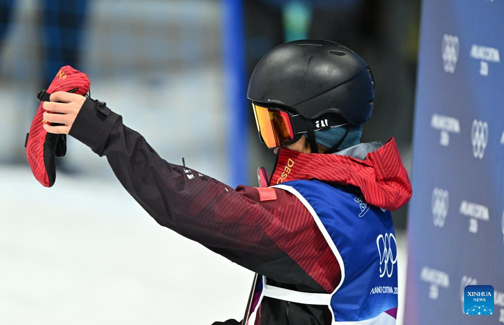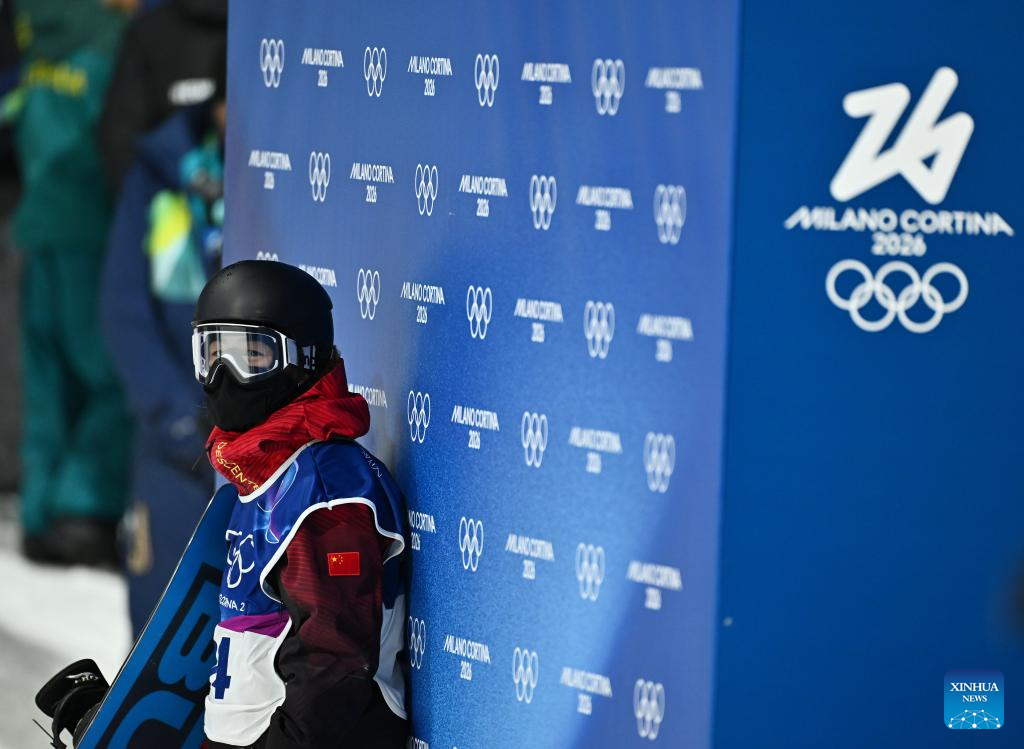 Ren Chongshuo of China reacts after the men's snowboard halfpipe qualification at the Milan-Cortina 2026 Olympic Winter Games in Livigno, Italy, Feb. 11, 2026. (Xinhua/Zhang Hongxiang)