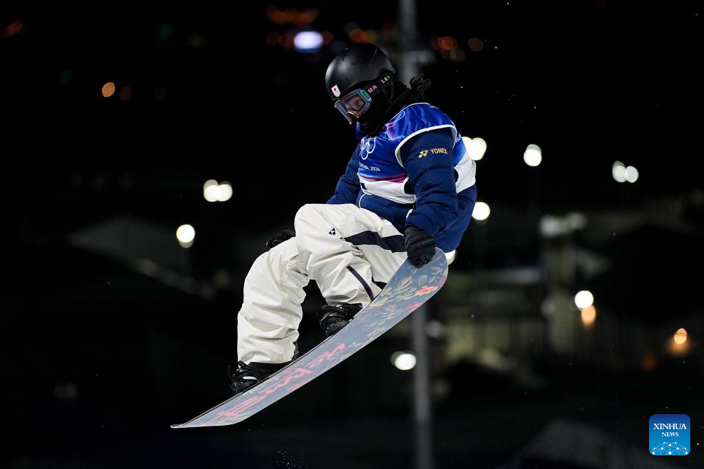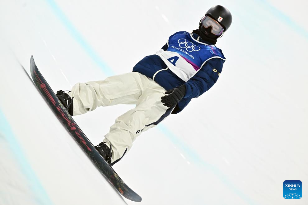 Totsuka Yuto of Japan competes during the men's snowboard halfpipe qualification at the Milan-Cortina 2026 Olympic Winter Games in Livigno, Italy, Feb. 11, 2026. (Xinhua/Wu Huiwo)