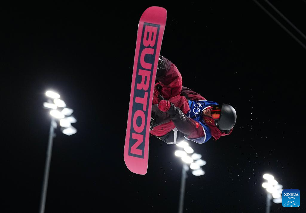 Jake Pates of the United States competes during the men's snowboard halfpipe qualification at the Milan-Cortina 2026 Olympic Winter Games in Livigno, Italy, Feb. 11, 2026. (Xinhua/Wu Huiwo)