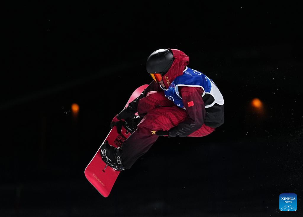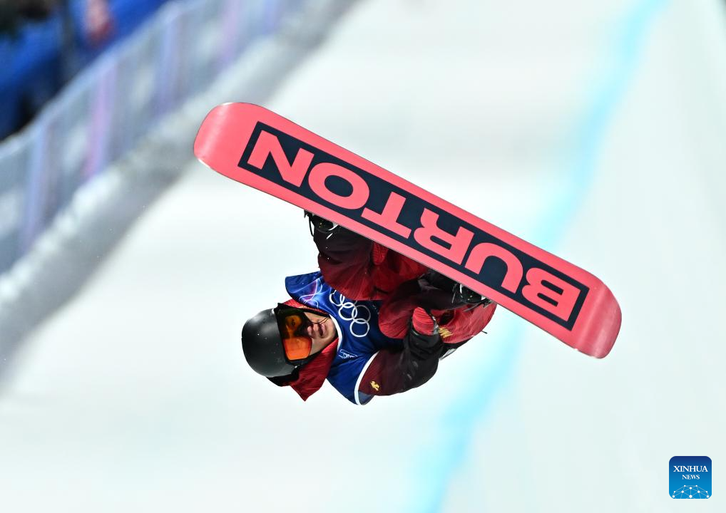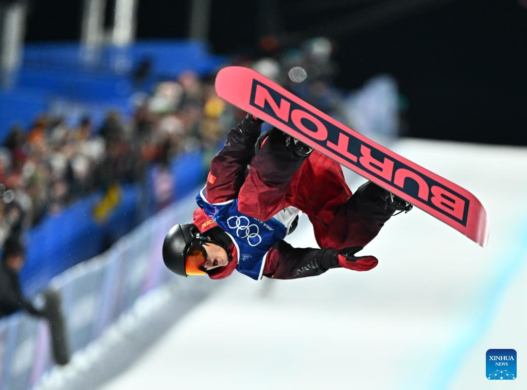 Ren Chongshuo of China competes during the men's snowboard halfpipe qualification at the Milan-Cortina 2026 Olympic Winter Games in Livigno, Italy, Feb. 11, 2026. (Xinhua/Wu Huiwo)