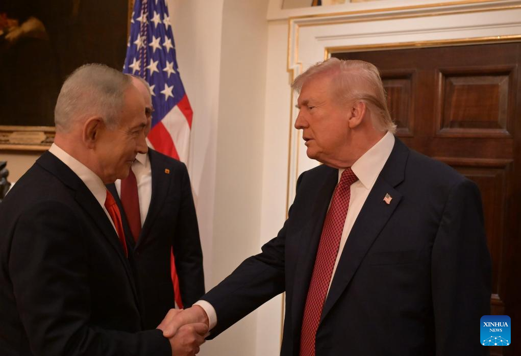 U.S. President Donald Trump (R) welcomes Israeli Prime Minister Benjamin Netanyahu at the White House in Washington, D.C., the United States, Feb. 11, 2026. Trump said that U.S.-Iran talks will continue to see whether a deal can be consummated, shortly after his closed-door meeting with visiting Israeli Prime Minister Benjamin Netanyahu at the White House on Wednesday. (Avi Ohayon/GPO/Handout via Xinhua)