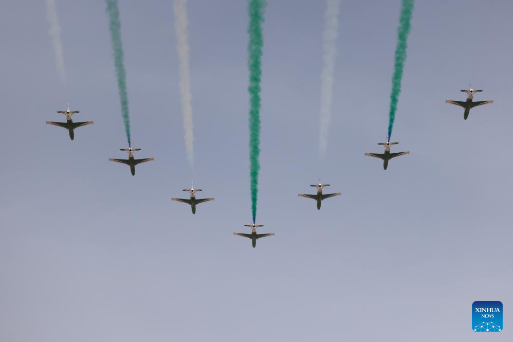 The Saudi aerobatic team performs at the World Defense Show 2026 in Riyadh, Saudi Arabia, Feb. 11, 2026.