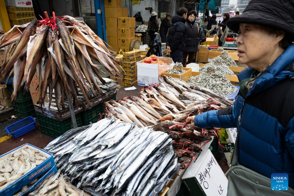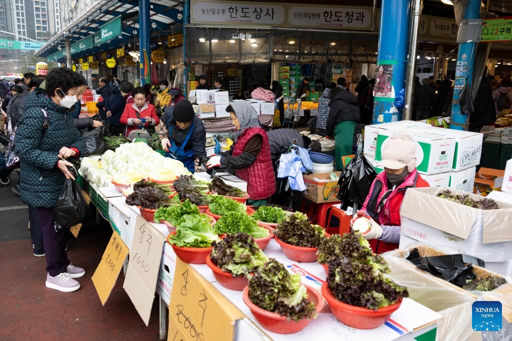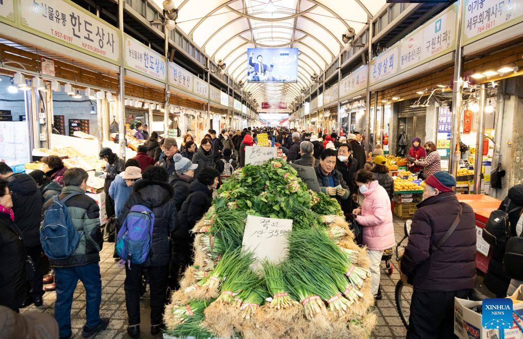 People visit a market ahead of the Lunar New Year holiday in Seoul, South Korea, Feb. 12, 2026. (Photo by Jun Hyosang/Xinhua)