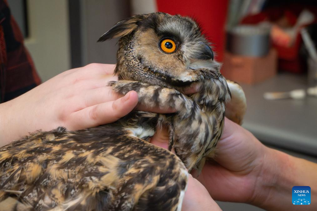 Staff members examine a distressed owl at the rescue center of the Warsaw Zoo in Warsaw, Poland on Feb. 11, 2026. Recently, the zoo opened a 24-hour bird rescue reception point where residents can bring injured or distressed birds during the winter. The birds are then transferred to the zoo's professional rescue center for treatment. (Photo by Jaap Arriens/Xinhua)