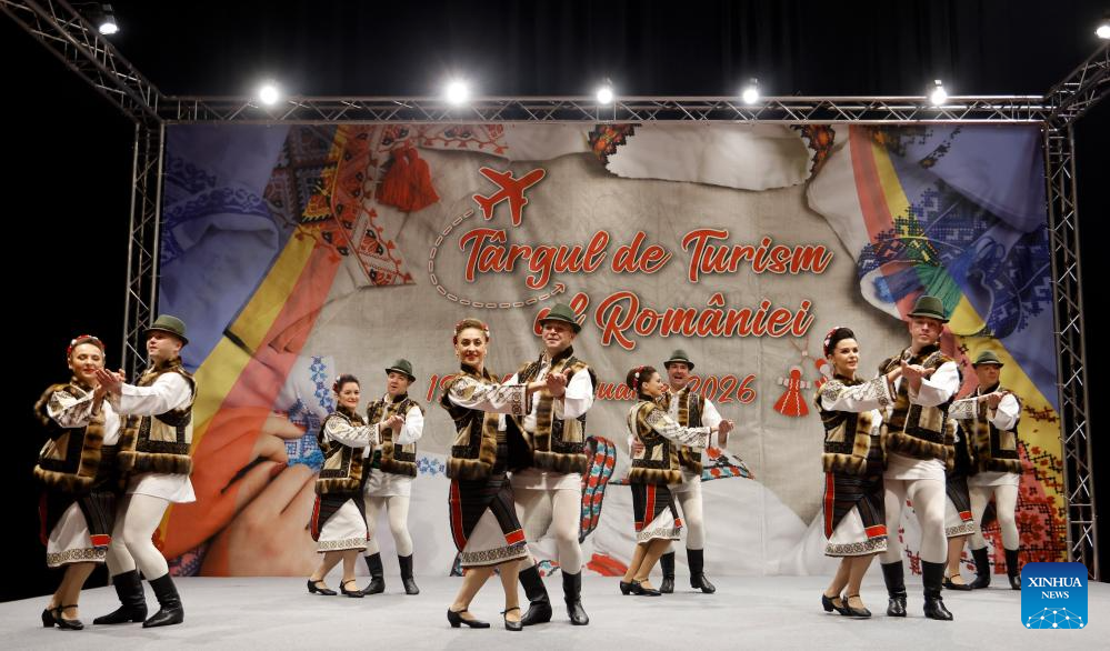 Members of a Romanian traditional dance band perform during the first day of Romania's Tourism Fair in Bucharest, Romania, Feb. 12, 2026. (Photo by Cristian Cristel/Xinhua)