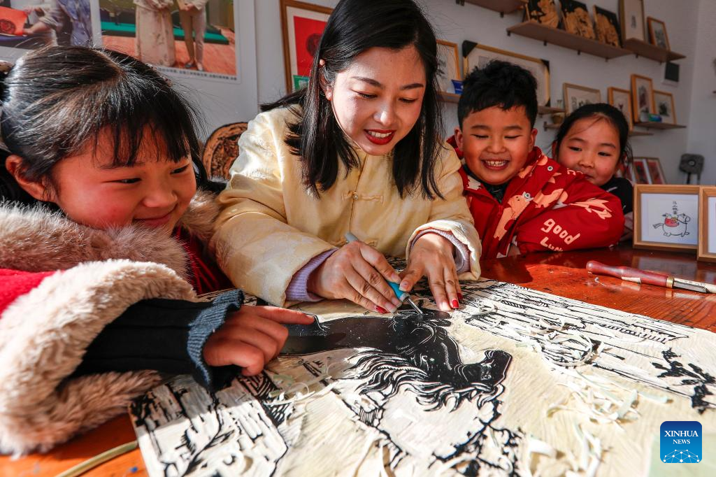 This year's Spring Festival marks the beginning of the Year of the Horse. With the vivid horse designs, the ingeniously crafted Huizhou woodblock print, a provincial-level intangible cultural heritage, adds an enduring charm to the authentic Chinese aesthetics. (Photo by Shi Yalei/Xinhua)