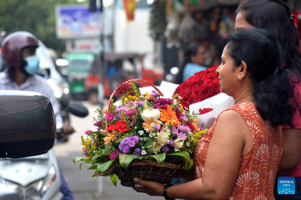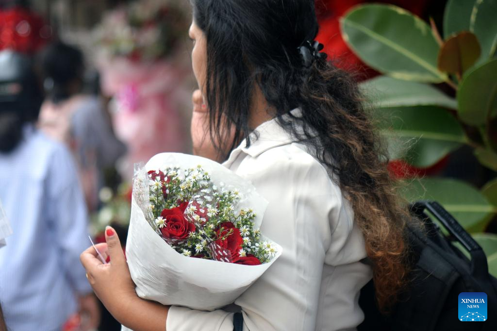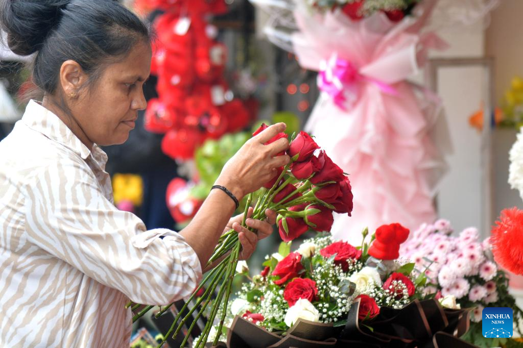 A woman buys flowers at a shop in Colombo, Sri Lanka on Feb. 13, 2026. Florists in Colombo are preparing fresh flowers for the upcoming Valentine's Day. (Photo by Gayan Sameera/Xinhua)