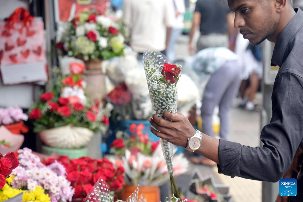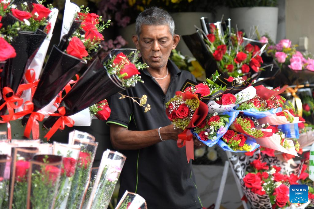 A man holding a bunch of flowers is pictured at a shop in Colombo, Sri Lanka on Feb. 13, 2026. Florists in Colombo are preparing fresh flowers for the upcoming Valentine's Day. (Photo by Gayan Sameera/Xinhua)