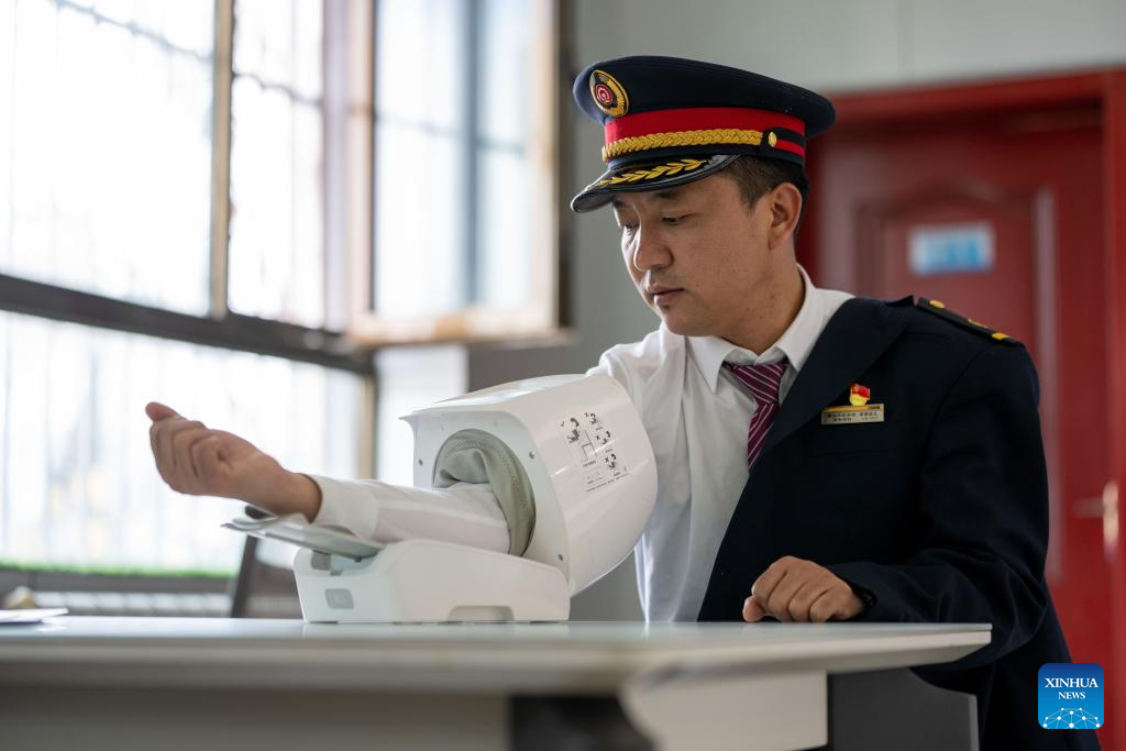 Sonam Wangdrak takes a physical test before his shift in Lhasa, southwest China's Xizang Autonomous Region, Feb. 14, 2026. (Xinhua/Tenzing Nima Qadhup)