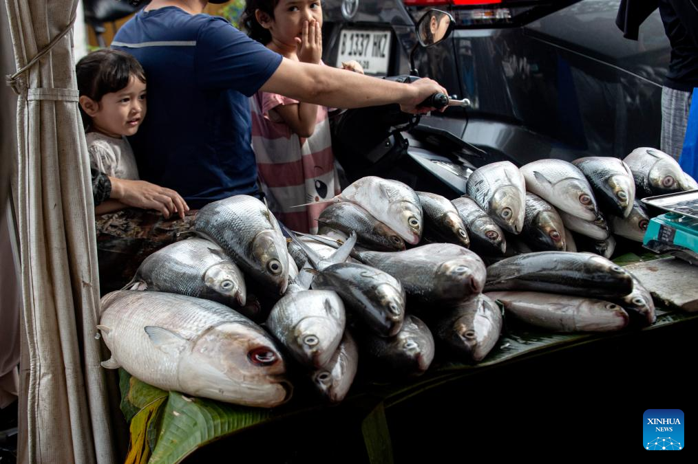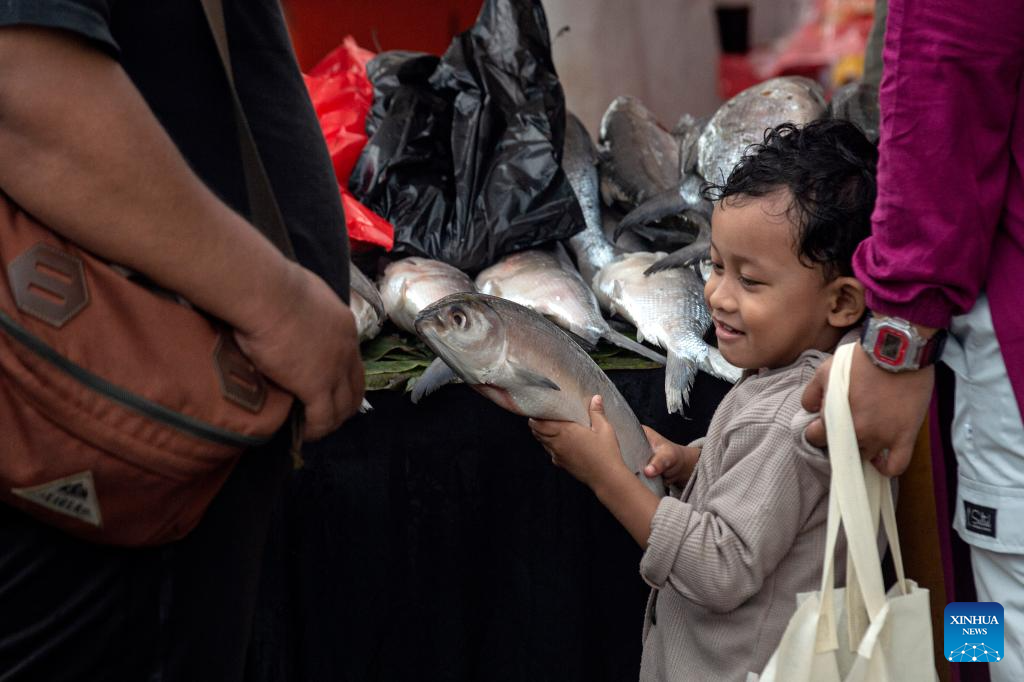 People select milkfish during the Rawa Belong Milkfish (Bandeng) Festival in Jakarta, Indonesia, Feb. 15, 2026. (Xinhua/Agung Kuncahya B.)
