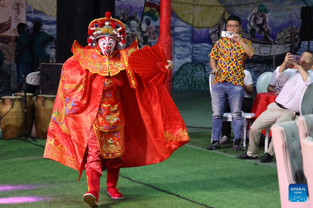 A face-changing show is staged during a gala marking the Chinese New Year in Tema, Greater Accra Region, Ghana, Feb. 16, 2026. (Photo by Seth/Xinhua)