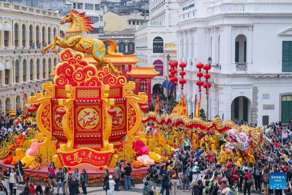Artists perform dragon dance in celebration of the Spring Festival in Macao, south China, Feb. 17, 2026. (Xinhua/Cheong Kam Ka)