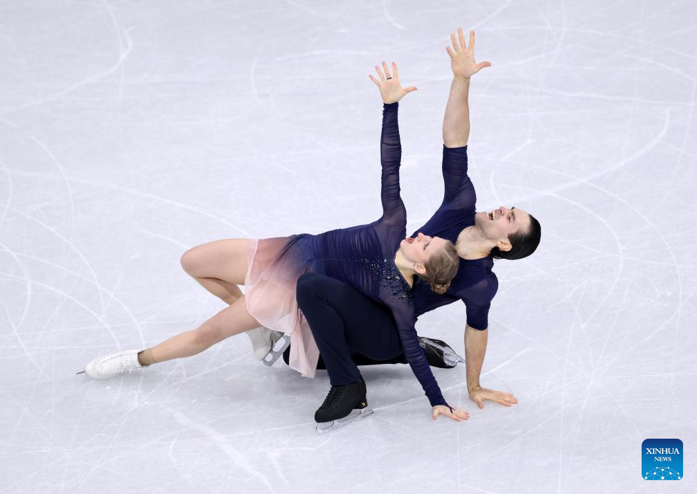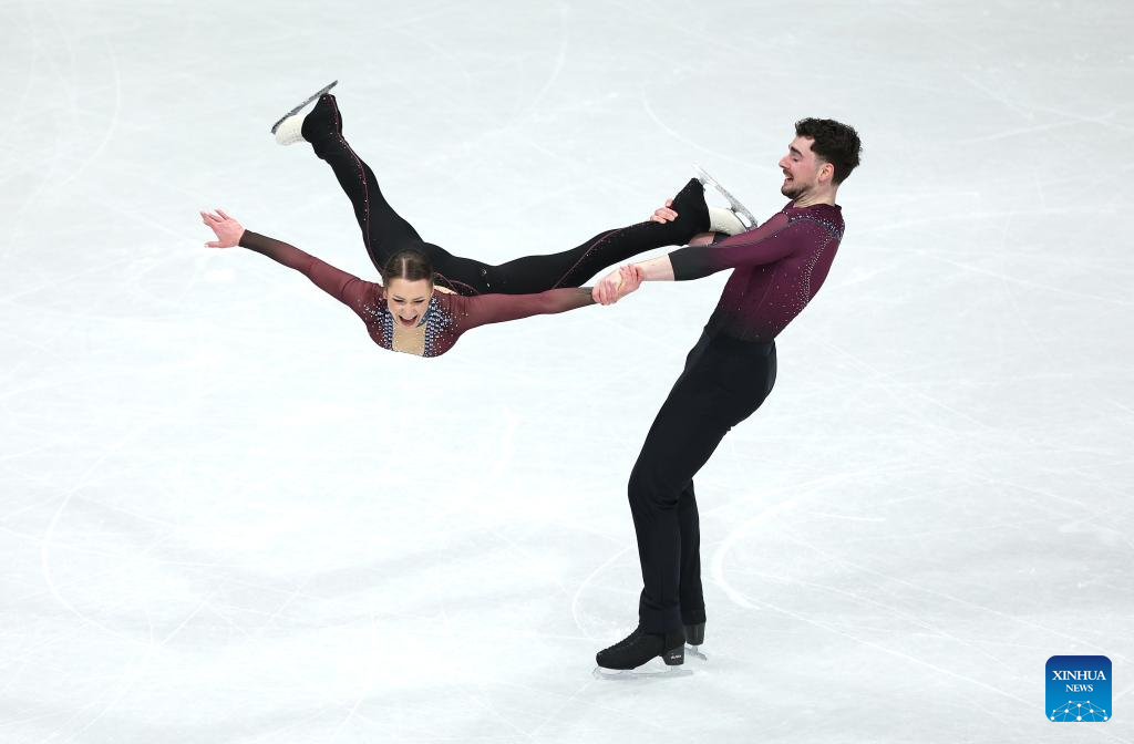 Anastasiia Metelkina/Luka Berulava of Georgia compete during the free skating of Figure Skating Pair Skating at the Milan-Cortina 2026 Olympic Winter Games in Milan, Italy, Feb. 16, 2026. (Xinhua/Li Ming)