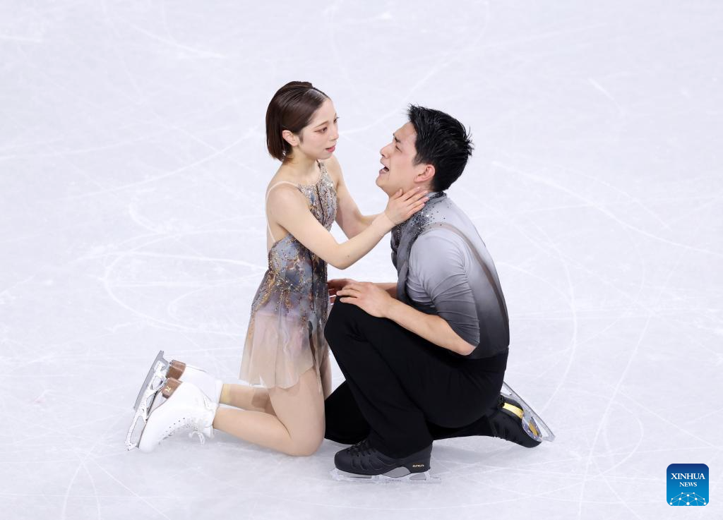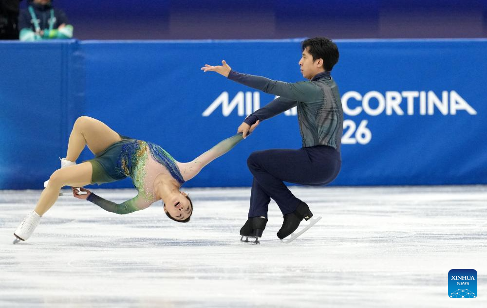 MILAN, Feb. 16 (Xinhua) -- Japan's world champions Riku Miura and Ryuichi Kihara set a pairs free skating world record with 158.13 points on Monday, completing a stunning comeback from fifth after the short program to win Olympic gold with a total of 231.24 at the Milan-Cortina 2026 Winter Olympics.