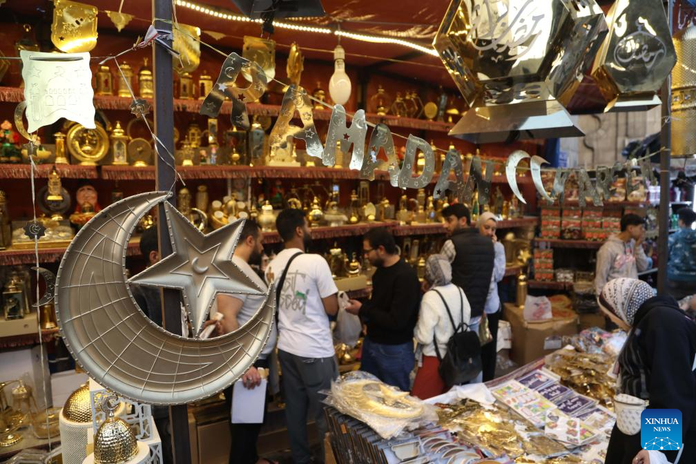 People choose lanterns at a market ahead of Ramadan in Cairo, Egypt, on Feb. 16, 2026. (Xinhua/Ahmed Gomaa)