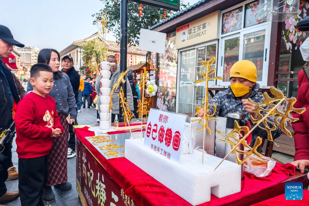 Tourists wait for a sugar painting in Changde, central China's Hunan Province, Feb. 17, 2026. During this Spring Festival holiday, traditional Chinese New Year food and trendy cuisines have altogether become highlights for peoples' holiday consumption. (Xinhua/Chen Sihan)