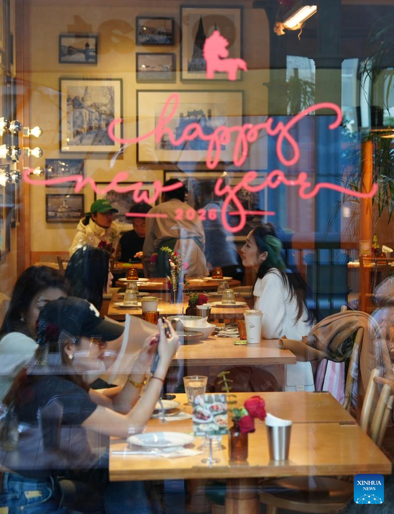 Customers dine at restaurant in Xi'an, northwest China's Shaanxi Province, Feb. 17, 2026. During this Spring Festival holiday, traditional Chinese New Year food and trendy cuisines have altogether become highlights for peoples' holiday consumption. (Xinhua/Shao Rui)
