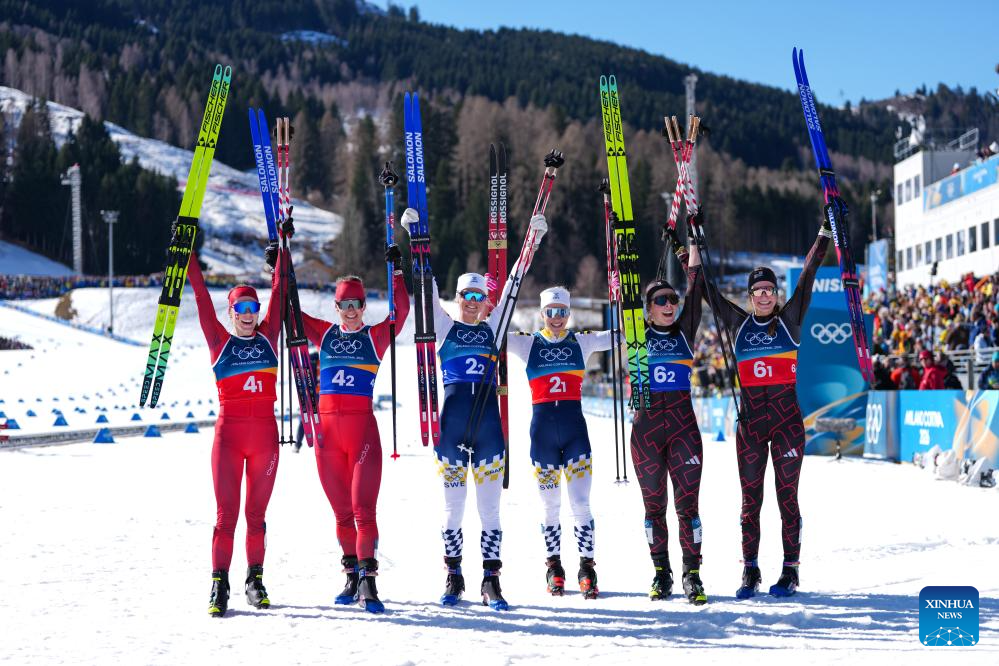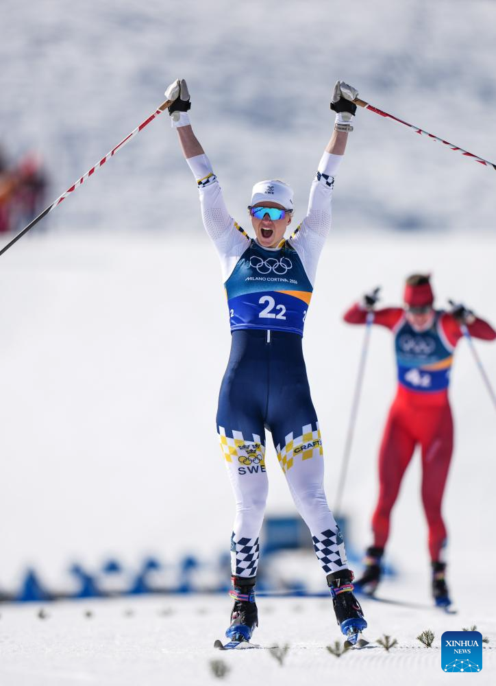TESERO, Italy, Feb. 18 (Xinhua) -- Johannes Hoesflot Klaebo extended his Olympic gold medal record to 10 as Norway secured the men's team sprint title at Milan-Cortina on Wednesday, while Sweden claimed the women's title.