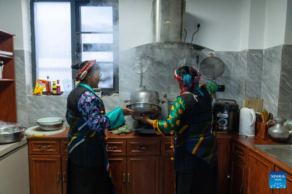 Last year, a 6.8 magnitude earthquake hit Dingri, home to the northern base camp of the world's highest peak, Mount Qomolangma, and other counties in the region on Jan. 7. In less than three days after the earthquake, Xizang rolled out a post-disaster reconstruction plan and kicked off the reconstruction work later. In the second half of 2025, the family of Sangs-rgyas moved into a safe and comfortable new residence. (Xinhua/Tenzing Nima Qadhup)