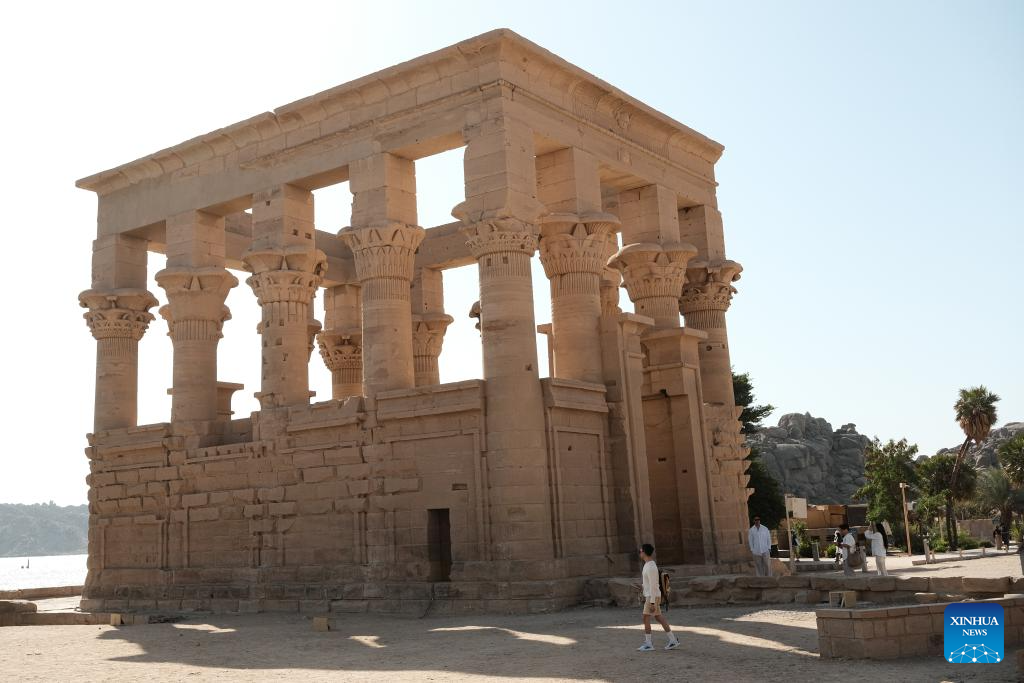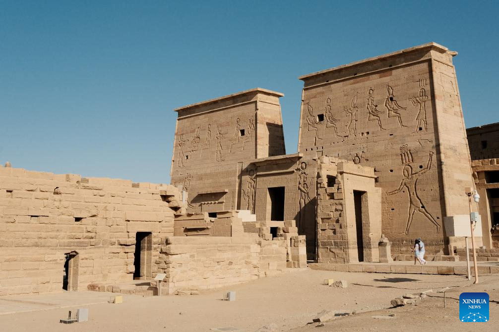 The temples were submerged because of the construction of Aswan Low Dam in early 1900s and the later construction of Aswan High Dam in the 1960s. And it was relocated, piece by piece, from Philae Island to the higher Agilkia Island decades ago as part of a UNESCO-led campaign to save it from flooding. (Xinhua/Xin Mengchen)