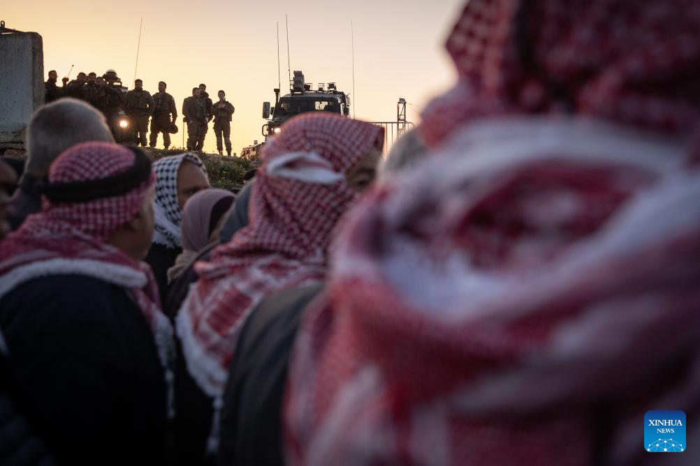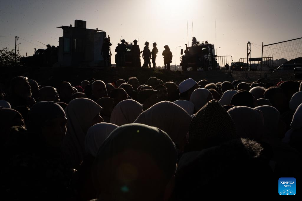 West Bank residents queue for security checks at the Qalandiya checkpoint, north of Jerusalem, Feb. 20, 2026. Israeli authorities tightened security in Jerusalem on the first Friday of Ramadan, capping West Bank worshippers' access to the Al-Aqsa Mosque compound at 10000. (Xinhua/Chen Junqing)