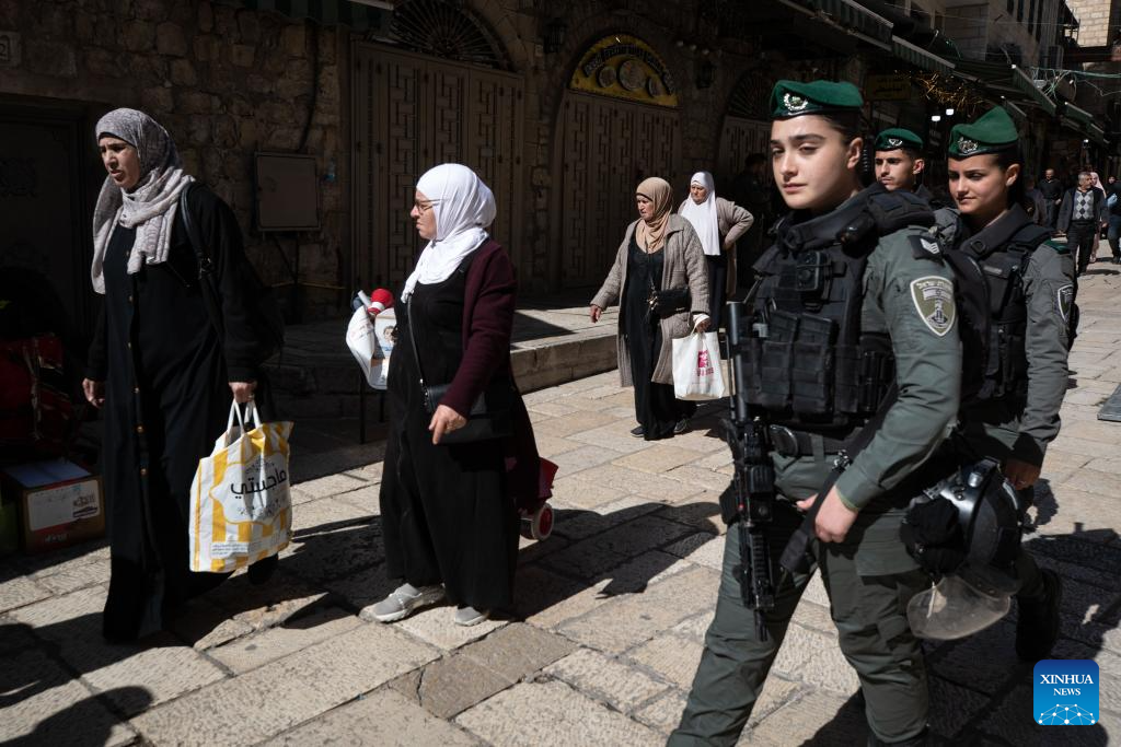 Palestinians walk toward the Al-Aqsa Mosque compound to attend the first Friday prayers of the holy month of Ramadan in Jerusalem's Old City, Feb. 20, 2026. Israeli authorities tightened security in Jerusalem on the first Friday of Ramadan, capping West Bank worshippers' access to the Al-Aqsa Mosque compound at 10000. (Xinhua/Chen Junqing)