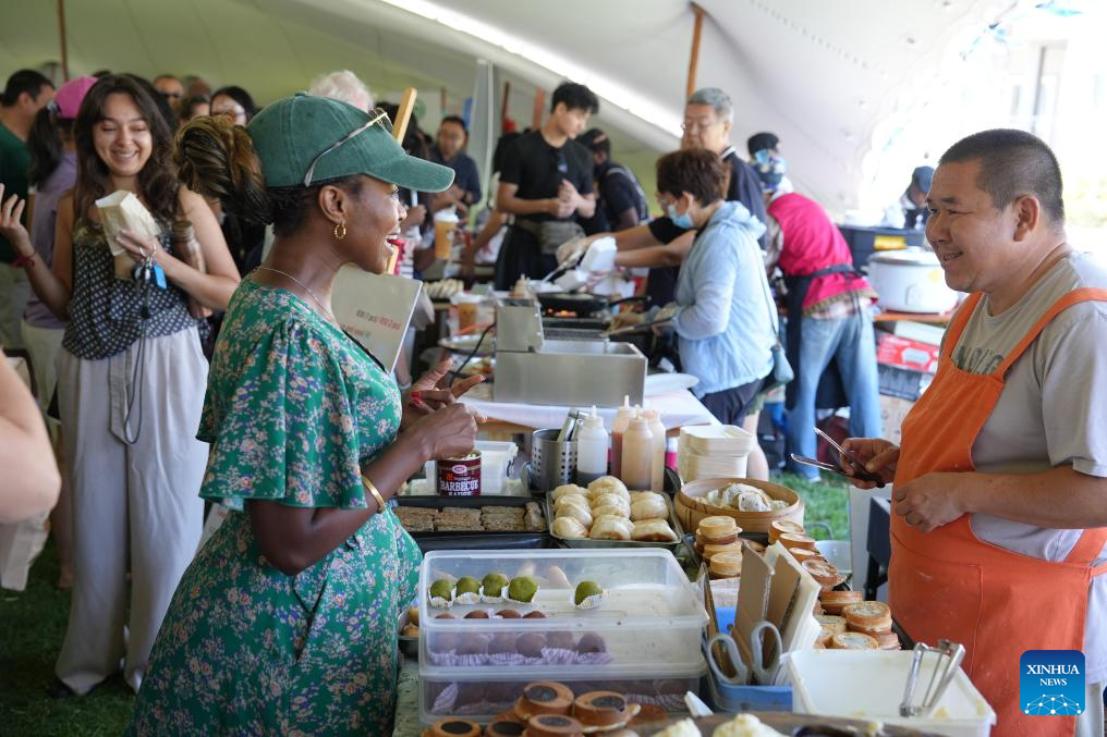 Local people visit a stall to buy Chinese food at the Chinese New Year temple fair in Cape Town, South Africa, Feb. 21, 2026. (Xinhua/Wang Lei)