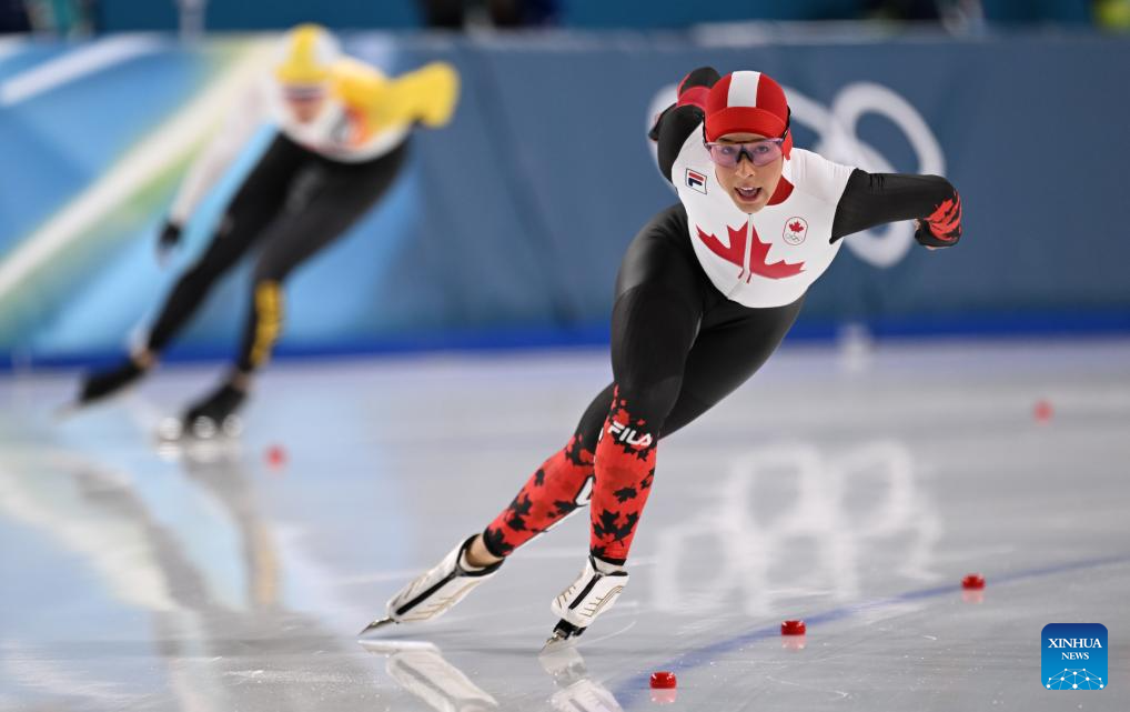 Valerie Maltais of Canada competes during the speed skating women's 1500m event at the Milan-Cortina 2026 Olympic Winter Games in Milan, Italy, Feb. 20, 2026. (Xinhua/Wu Wei)