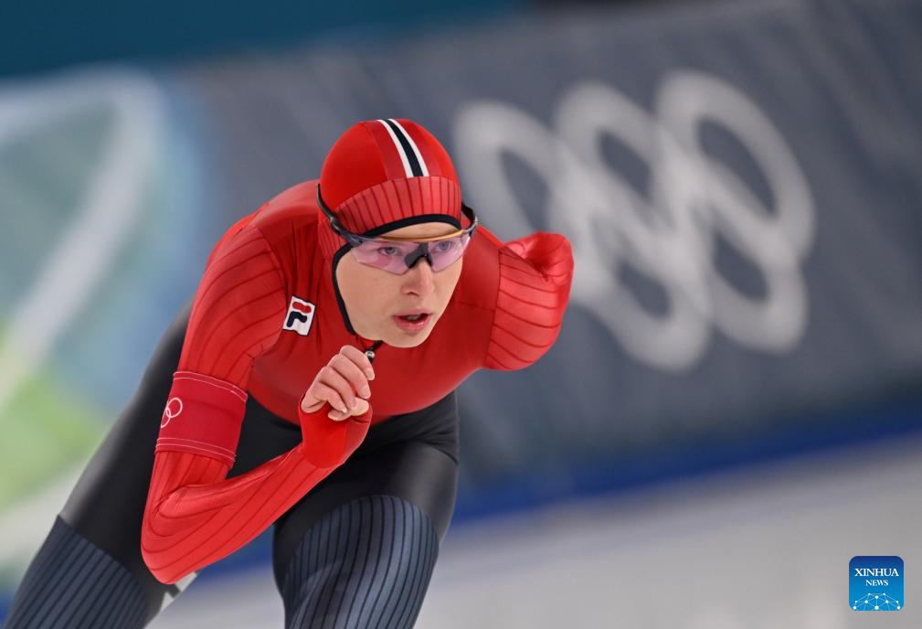 Ragne Wiklund of Norway competes during the speed skating women's 1500m event at the Milan-Cortina 2026 Olympic Winter Games in Milan, Italy, Feb. 20, 2026. (Xinhua/Wu Wei)