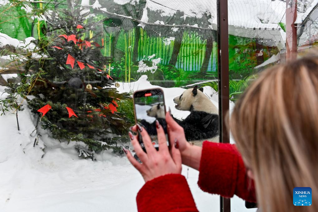 A woman takes photos of Giant panda Ru Yi during an event celebrating the Chinese Lunar New Year at the Moscow Zoo in Moscow, Russia, Feb. 21, 2026. (Photo by Alexander Zemlianichenko Jr/Xinhua)