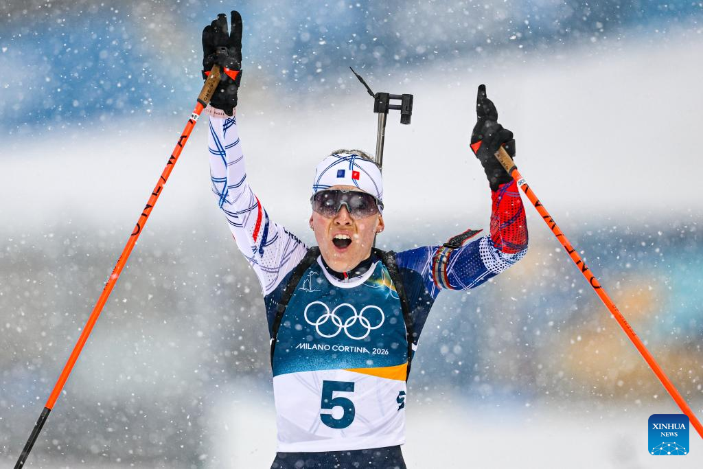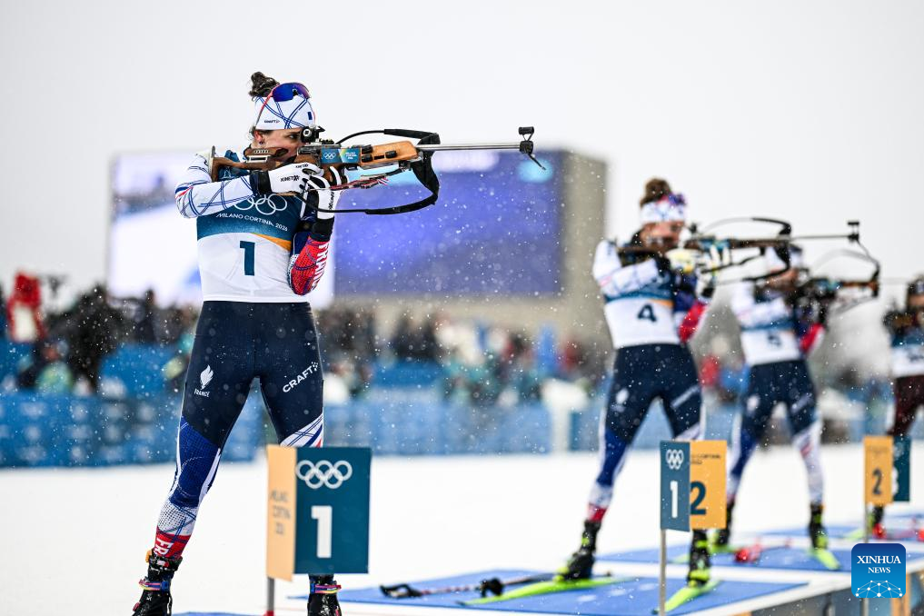 ANTERSELVA, Italy, Feb. 21 (Xinhua) -- The biathlon competitions at the Milan-Cortina Winter Olympics concluded on Saturday with France's Oceane Michelon claiming gold in the women's 12.5km mass start, while her teammate Julia Simon took silver and Czech biathlete Tereza Vobornikova secured bronze.