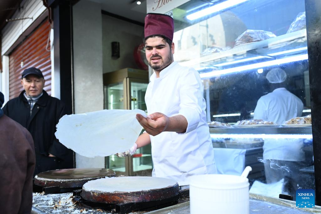 A vendor makes traditional Moroccan pastries at a market during the Muslim holy month of Ramadan in Rabat, Morocco, on Feb. 21, 2026. (Photo by Aissa/Xinhua)