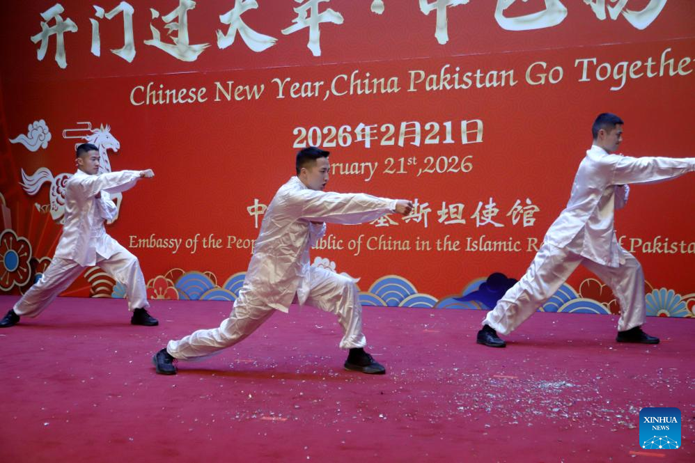 People perform during a Spring Festival celebration in Islamabad, capital of Pakistan, on Feb. 21, 2026. (Xinhua/Zhang Jingyao)