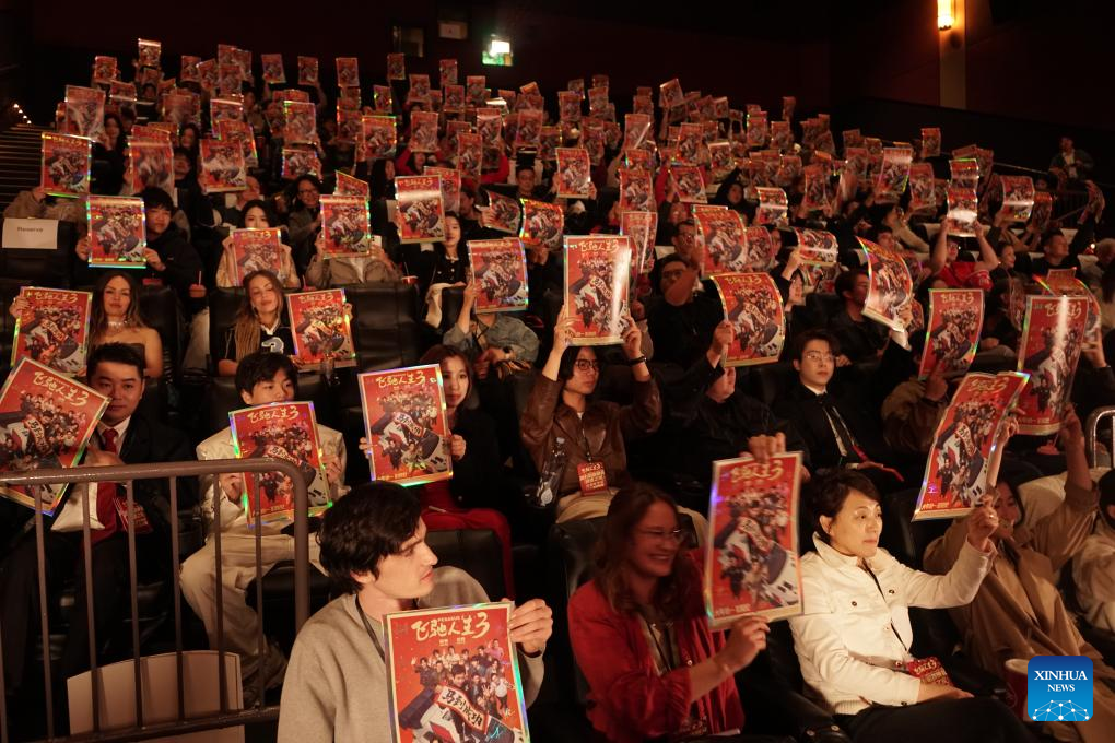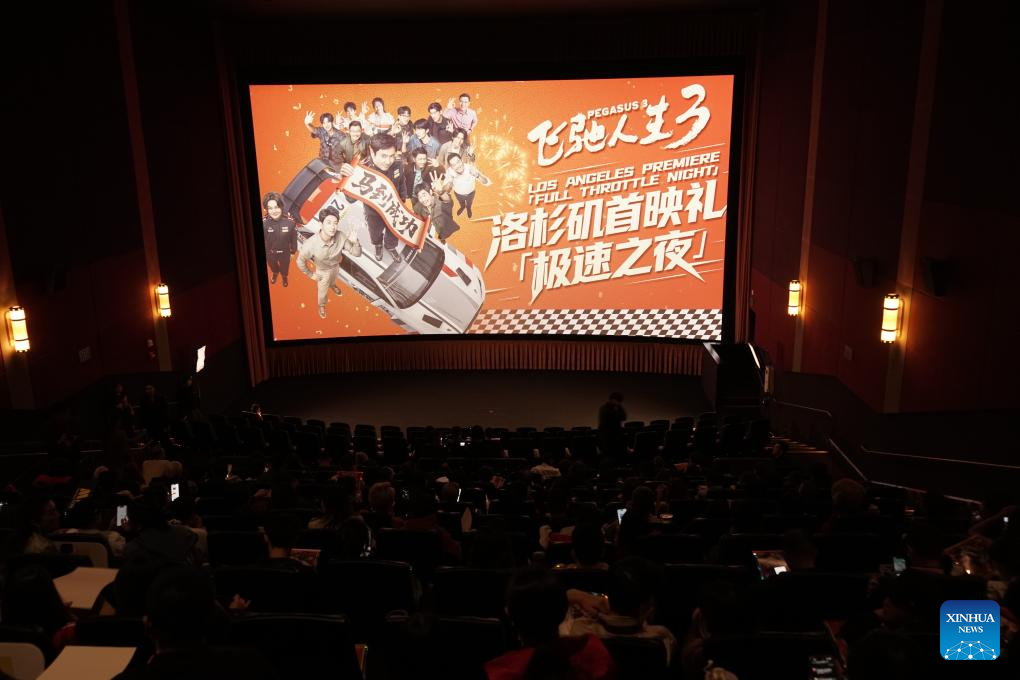 Moviegoers attend the North American premiere of the Chinese film "Pegasus 3" at a cinema in Los Angeles, California, the United States, on Feb. 22, 2026. "Pegasus 3," the latest installment in Han Han's blockbuster car racing comedy franchise, is set to be released in North America on Feb. 27. (Photo by Zeng Hui/Xinhua)