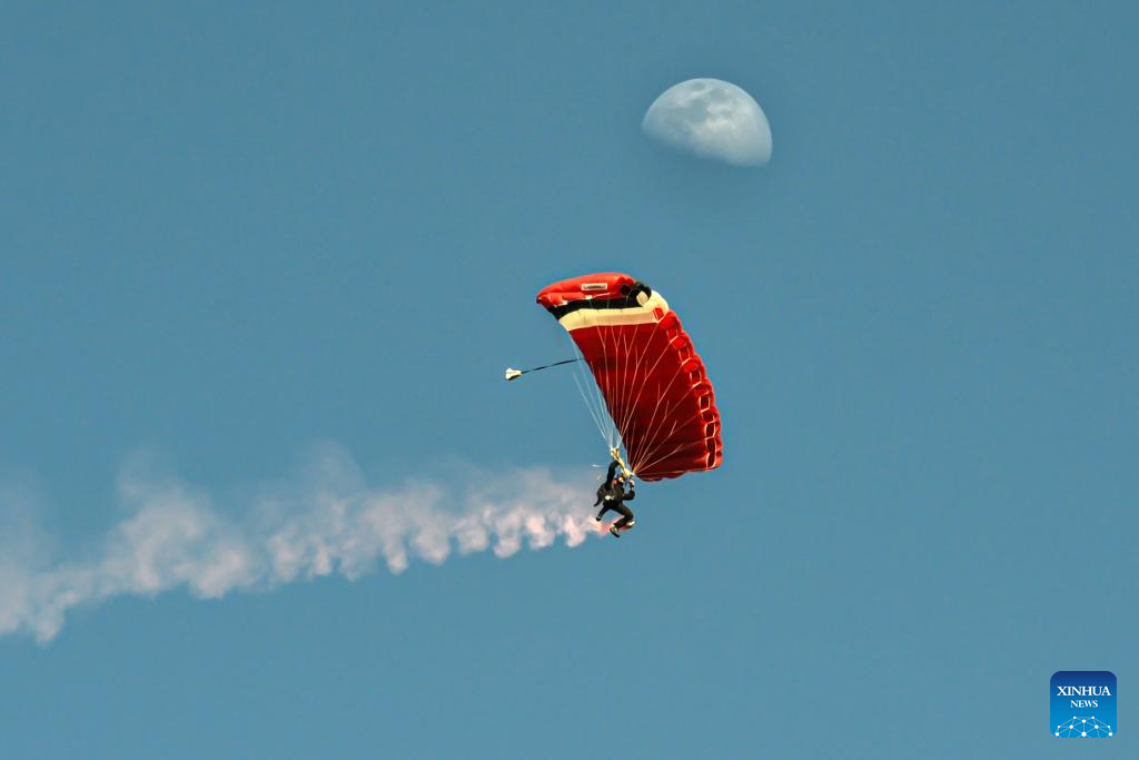 A skydiver performs over Kuwait City in celebration of Kuwait's National Day and Liberation Day, in Kuwait, Feb. 25, 2026. (Photo by Asad/Xinhua)