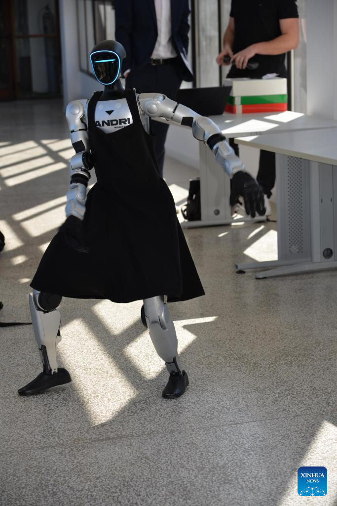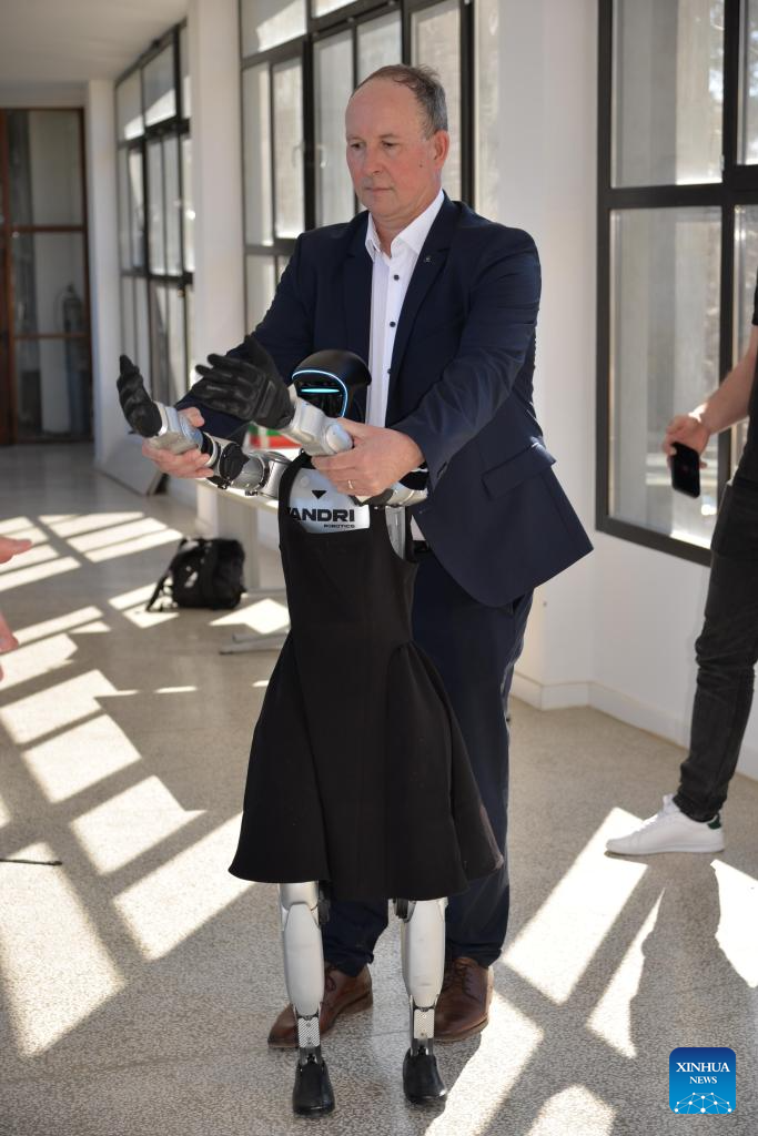 Named Tonka after a popular Croatian female name to reflect local culture, the robot is built on the Unitree G1 platform developed by China's Unitree Robotics. (Xinhua/Ma Zhen)