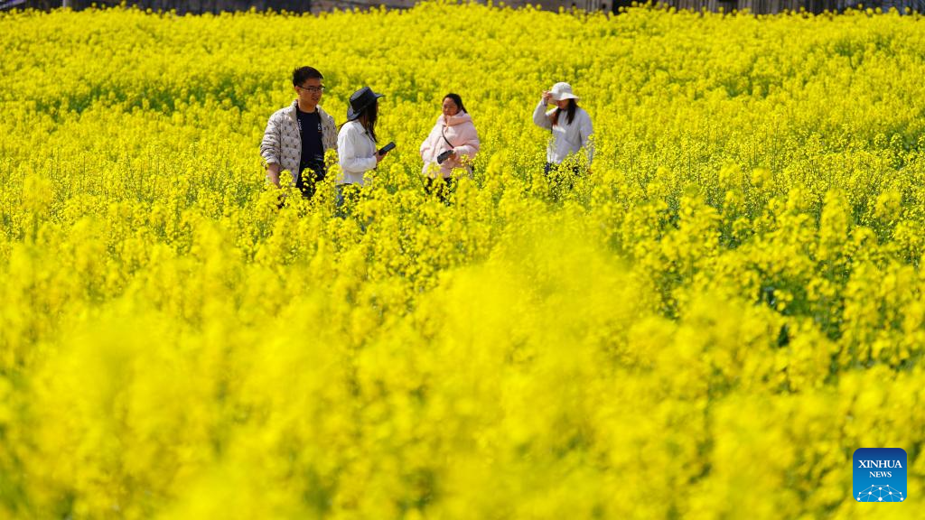 Tourists visit a rapeseed flower field in Haizi Town of Yiliang County, Zhaotong, southwest China's Yunnan Province, on Feb. 26, 2026. (Photo by Peng Hong/Xinhua)