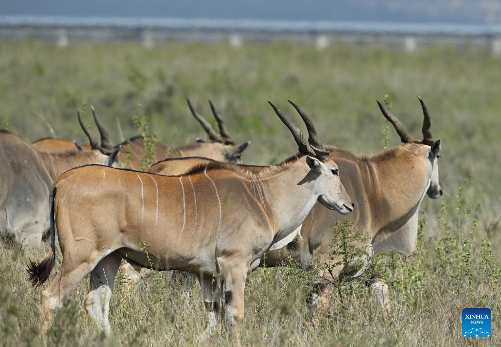 This photo taken on Feb. 26, 2026 shows a herd of elands at the Nairobi National Park in Kenya. The Nairobi National Park is one of the few capital-based reserves in the world. Spanning 117 square kilometers of savannah, forests, and wetlands dotted with valleys and seasonal lakes, the park shelters over 100 mammal species and 400 bird varieties. (Xinhua/Liu Qiong)